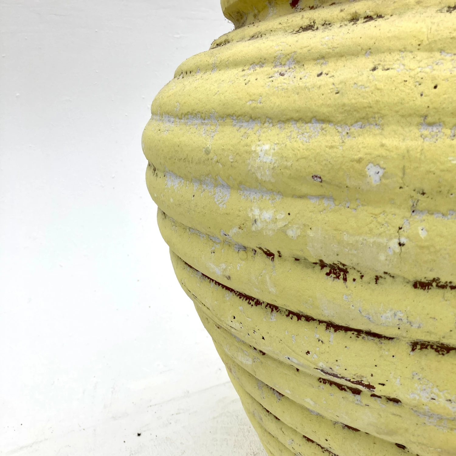 Make a bold statement with this magnificent Ali Baba outdoor pot, named after the infamous Arabic folklore character. With a classic urn shape, and bold horizontal ridges, it is finished with an antique, yellow glaze to really make it stand out in any setting.