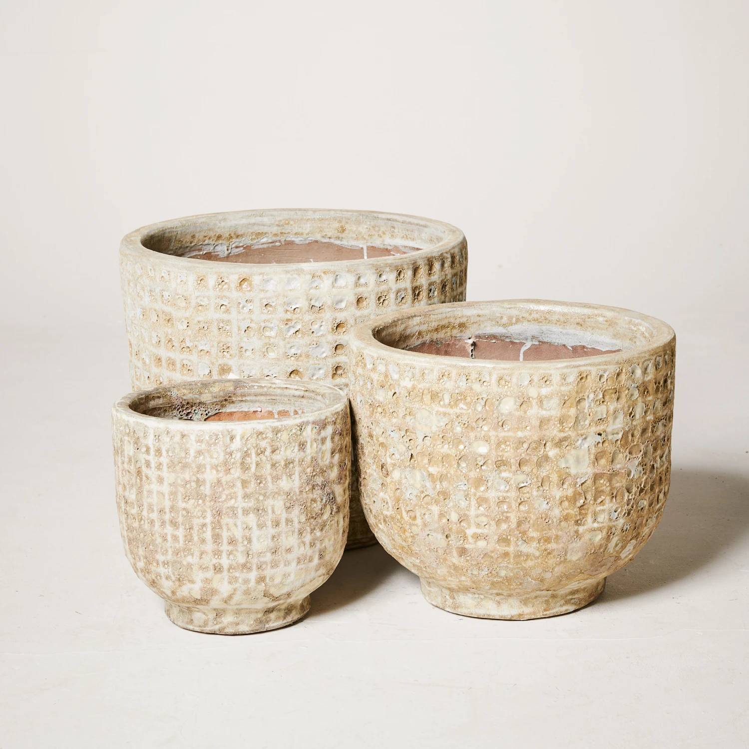 No two pots are identical and it is this organic nature that makes these pots work so well. The pumice-like finish is reminiscent of hardened lava which blends in with any natural environment and gives the illusion of the pot being an extension of the landscape, rather than something made by human hands.
