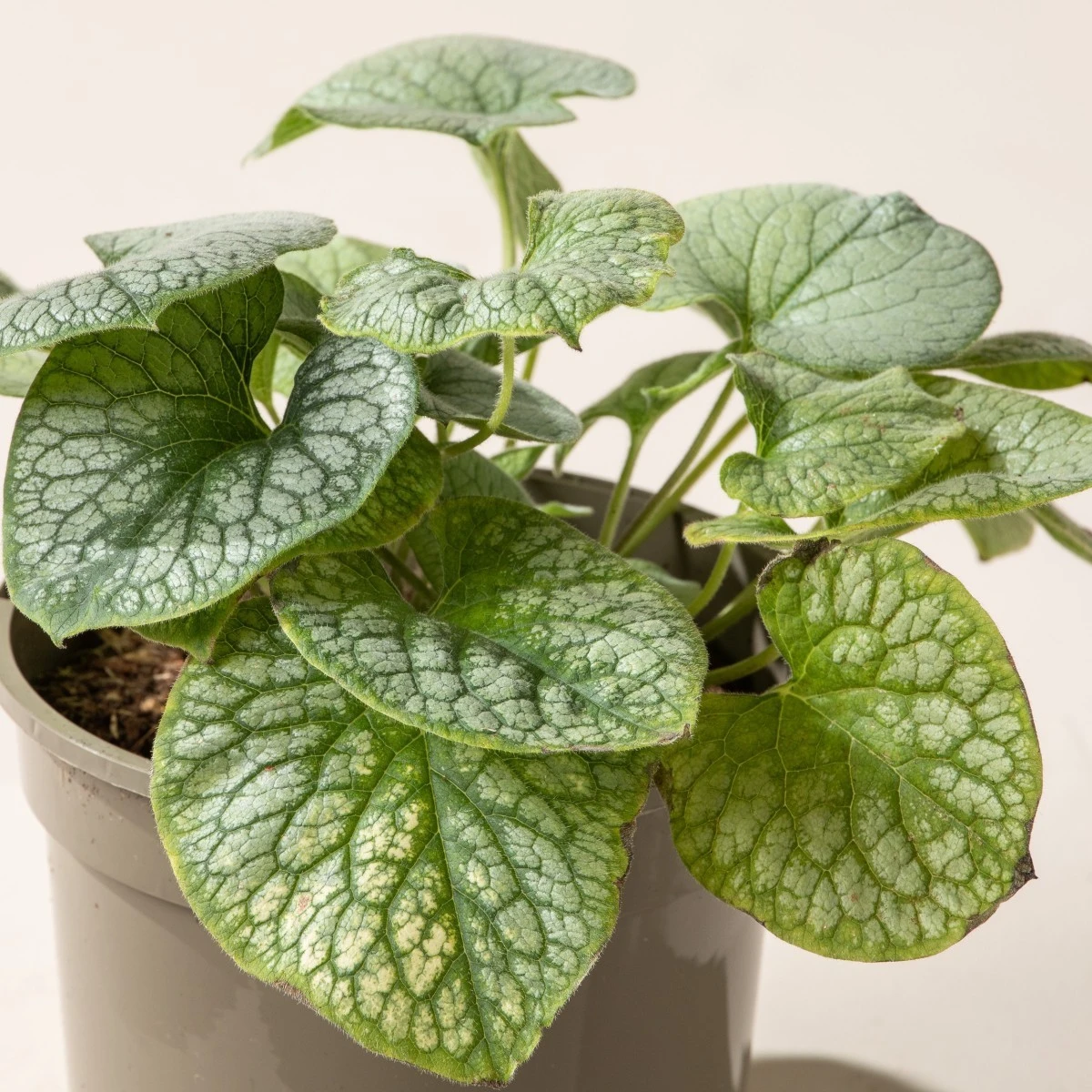 Discover the enchanting beauty of Brunnera ‘Jack Frost,’ a mesmerising perennial that adds a touch of magic to any garden. With its heart-shaped, silver-frosted leaves glistening like moonlight, this plant captivates the eye and creates an ethereal atmosphere. In early spring, delicate sprays of azure-blue, forget-me-not-like flowers emerge, providing a stunning contrast against the silver foliage.
