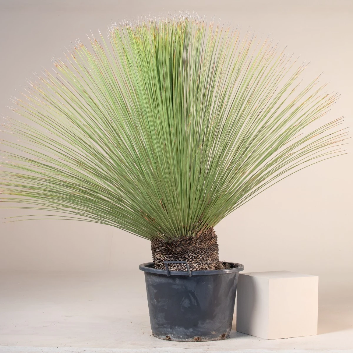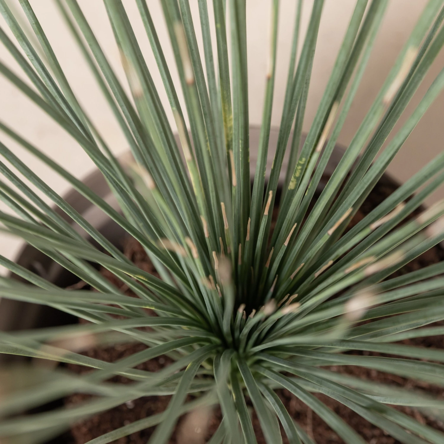 Dasylirion longissimum is a succulent plant related to Yucca and Agave that slowly grows a thick, beautifully scarred trunk from which erupts a tufted head of narrow, rigid, 4-angled green leaves, each with a slightly withered tip, reminiscent of a fibre-optic lamp.