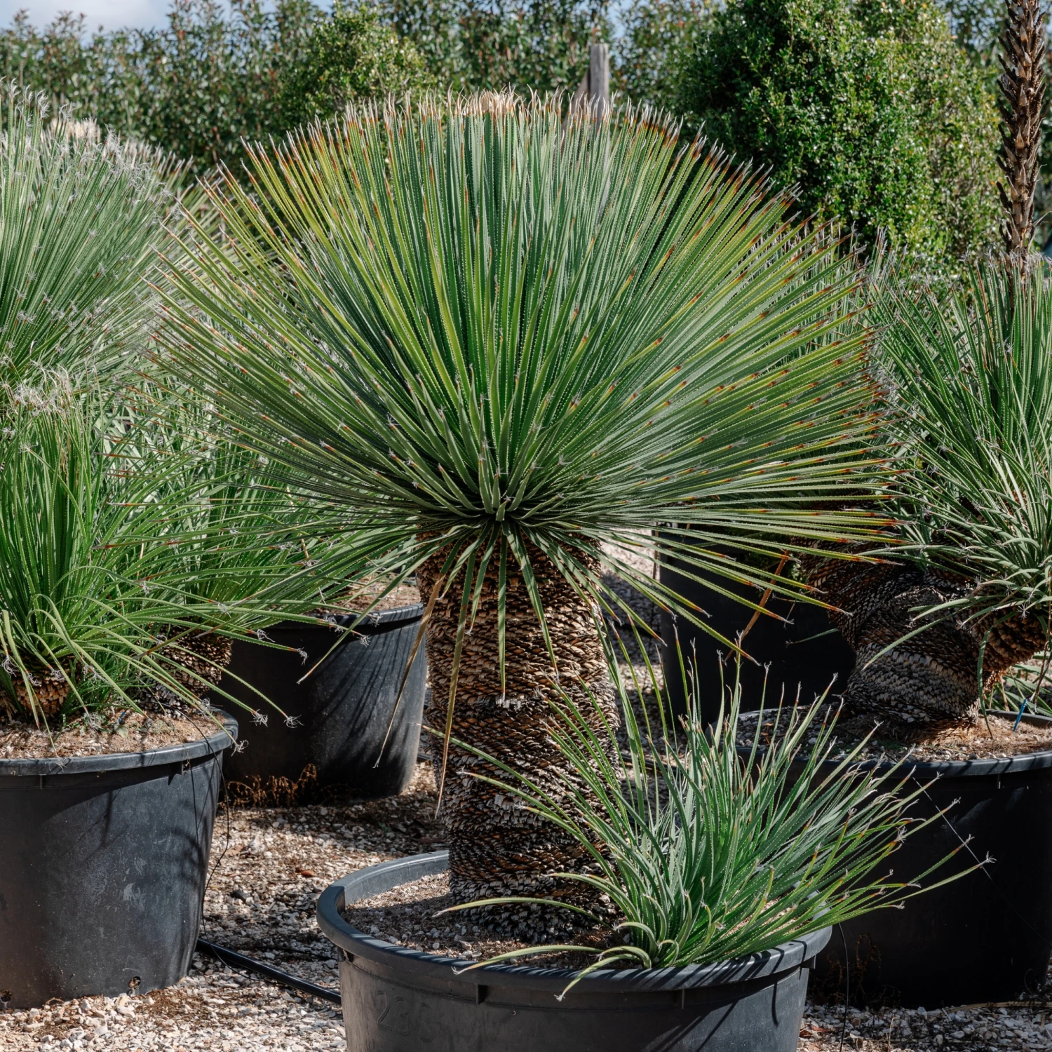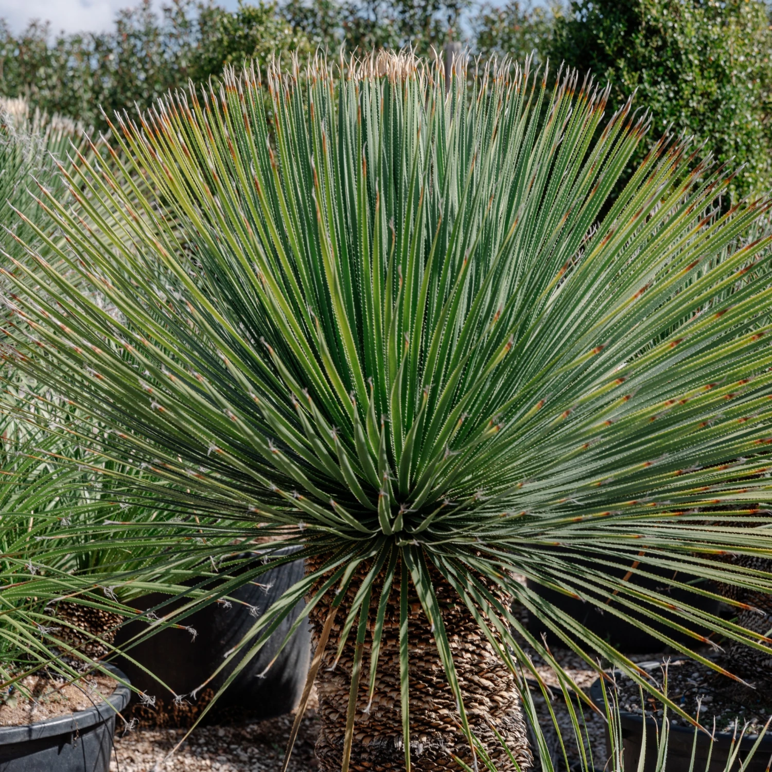 Dasylirion serratifolium, known as Serrated Dasylirion, is a striking succulent characterised by its rosette of narrow, serrated leaves. Native to Mexico, it thrives in arid environments, showcasing gray-green foliage with serrated edges, offering an eye-catching, spiky appearance.