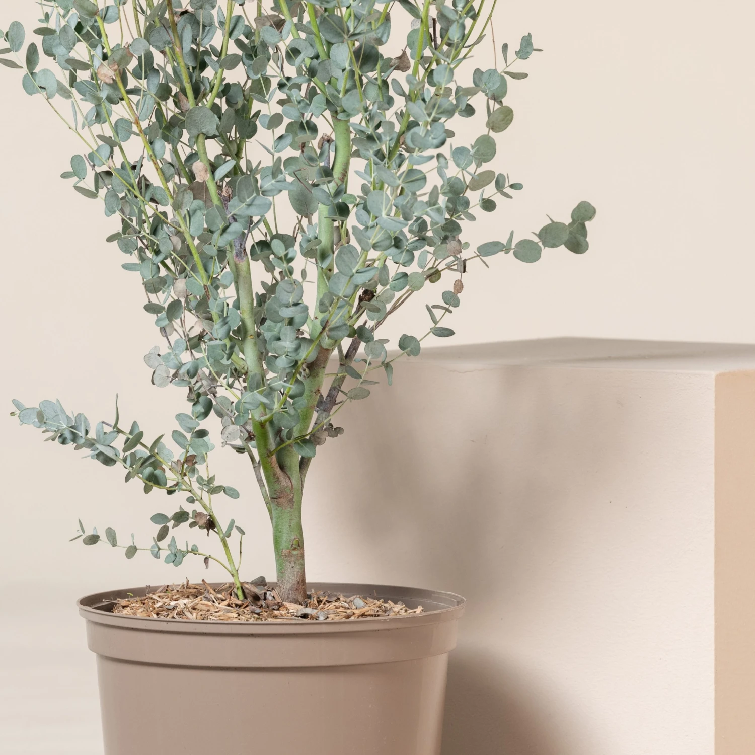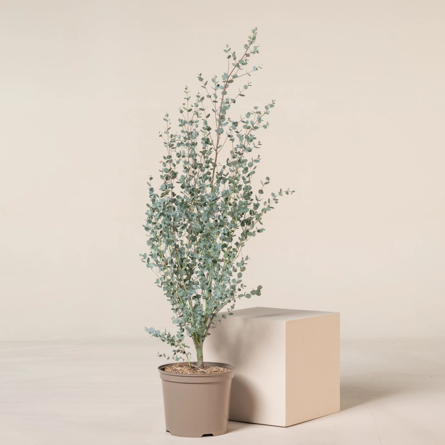 Eucalyptus gunnii ‘Silverana’, commonly known as Cider Gum, is prized for its striking silvery-blue foliage which emits a refreshing menthol fragrance. Thriving in sunny, well-drained soil with minimal watering needs, it reaches heights of 12 metres if left to grow naturally, although it can be maintained to a smaller size.
