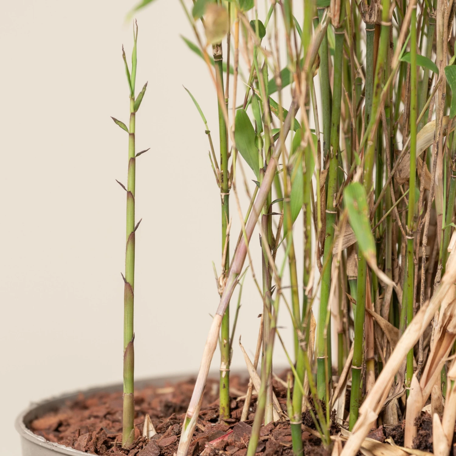 A handsome, fountain shaped bamboo that provides unique evergreen texture to any space. Lush green foliage and yellow canes are complimented by pleasing orange-pink sheaths as new growth pushes early in the season.