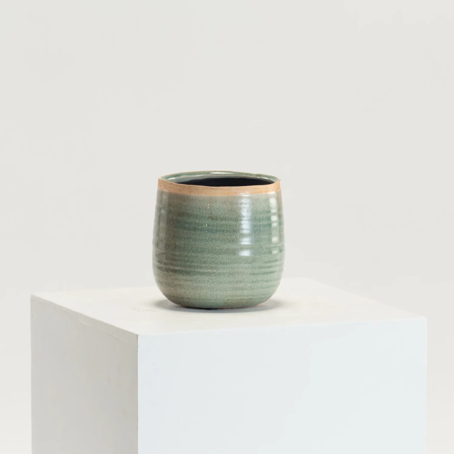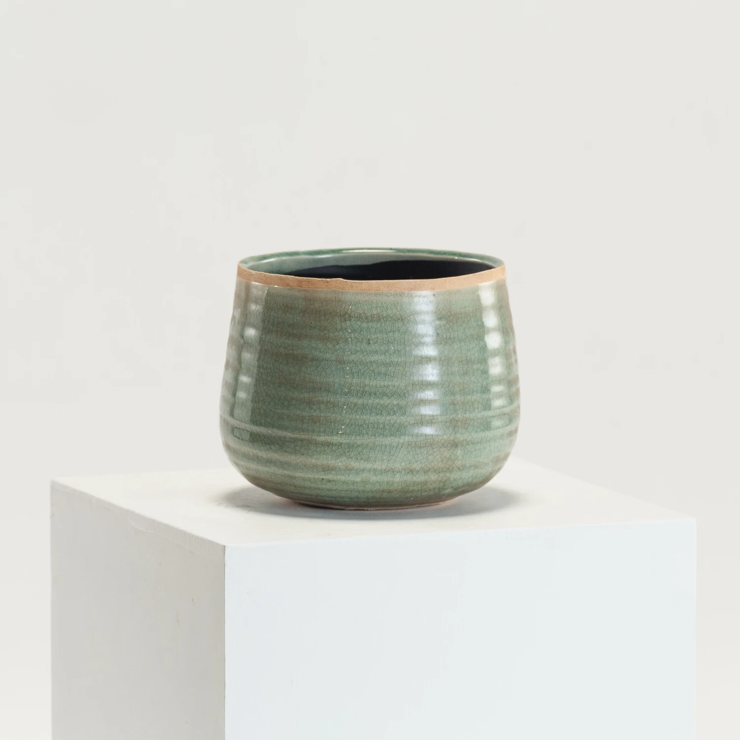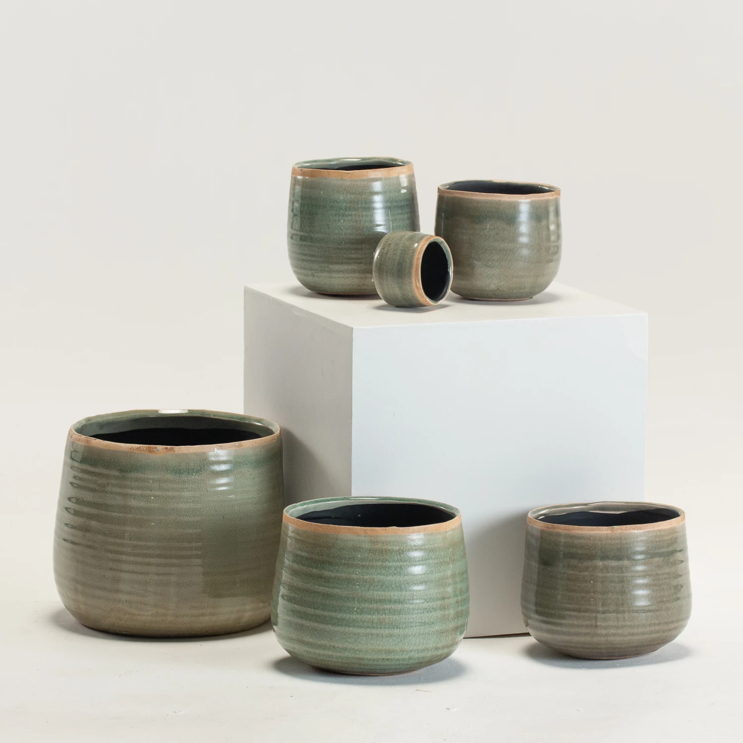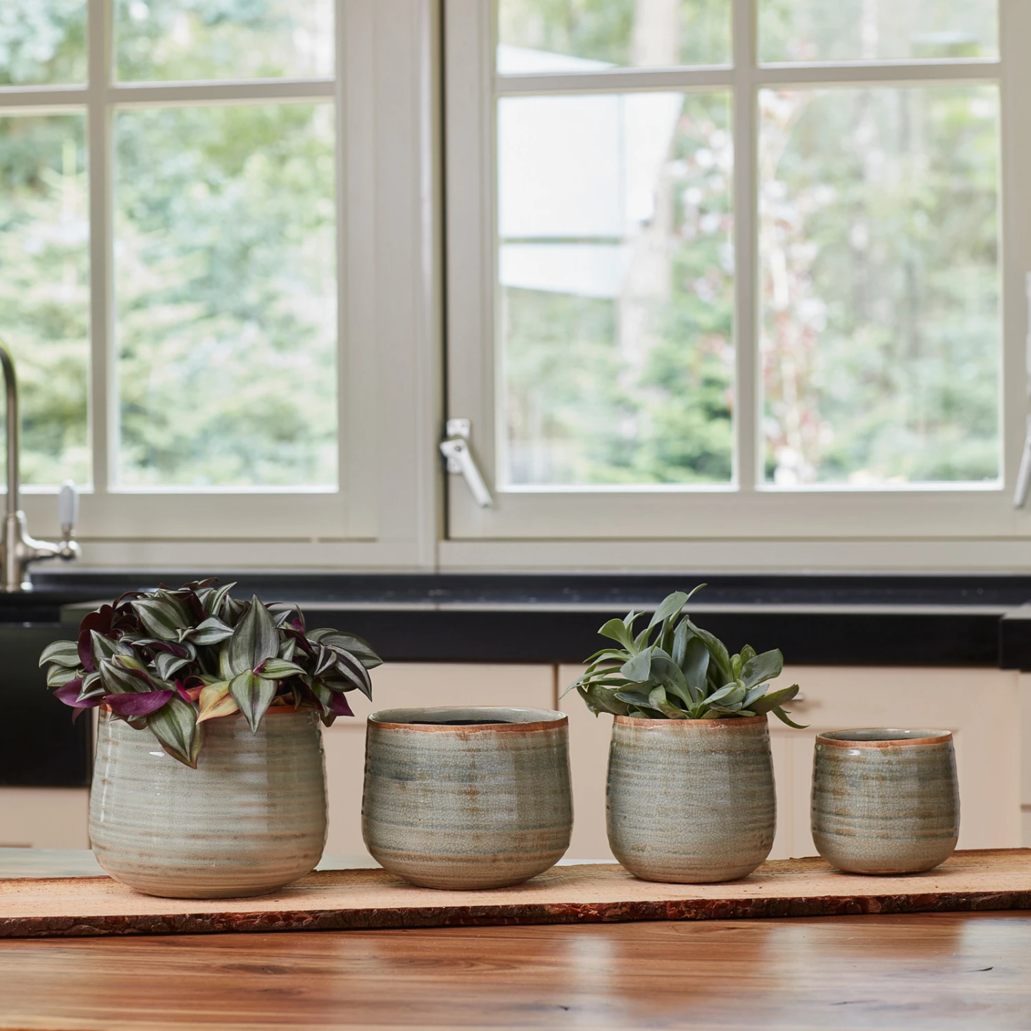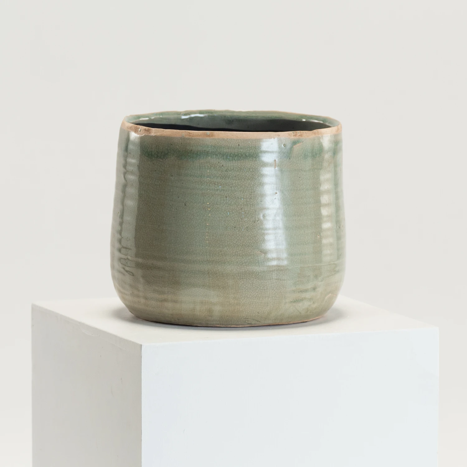 The Iris collection is a range of ceramic pots with a vintage, handcrafted feel. They come in pastel hues, finished with a craquelure texture and feature exposed ceramic rims.