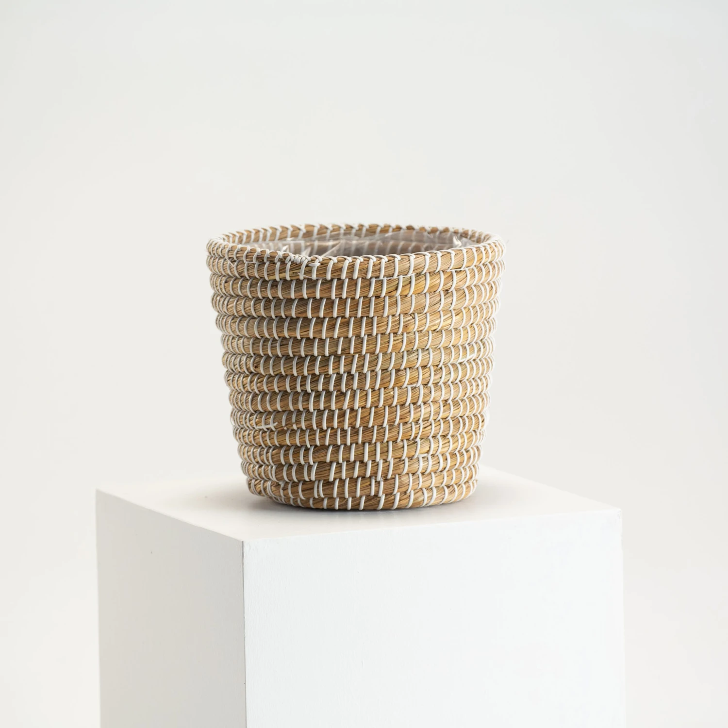 The Jula collection is a range of handmade woven basket pots made of natural seagrass fibre.