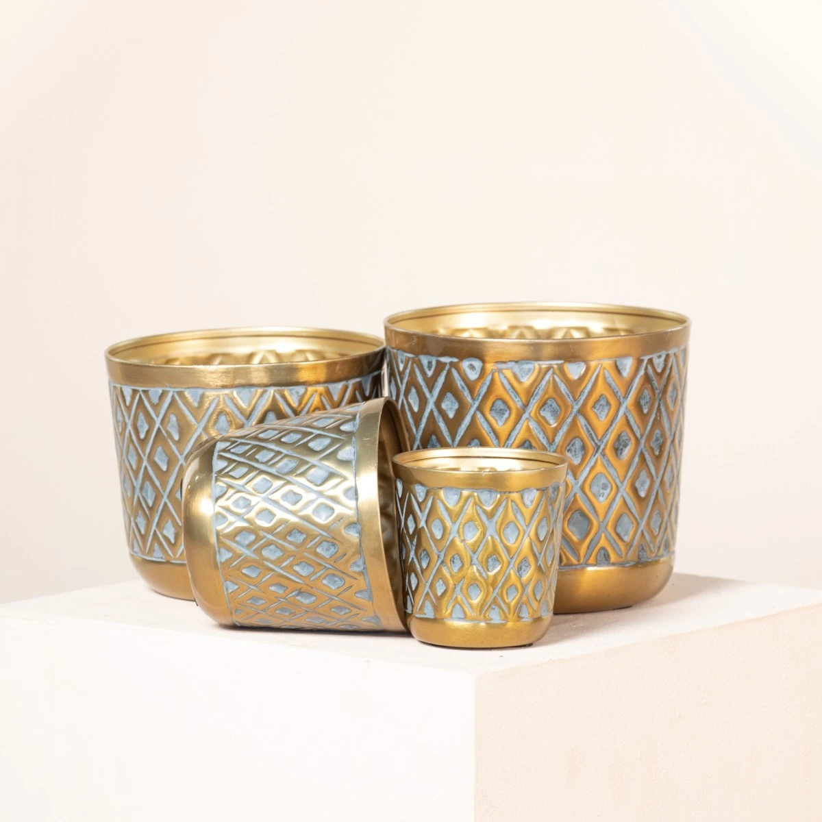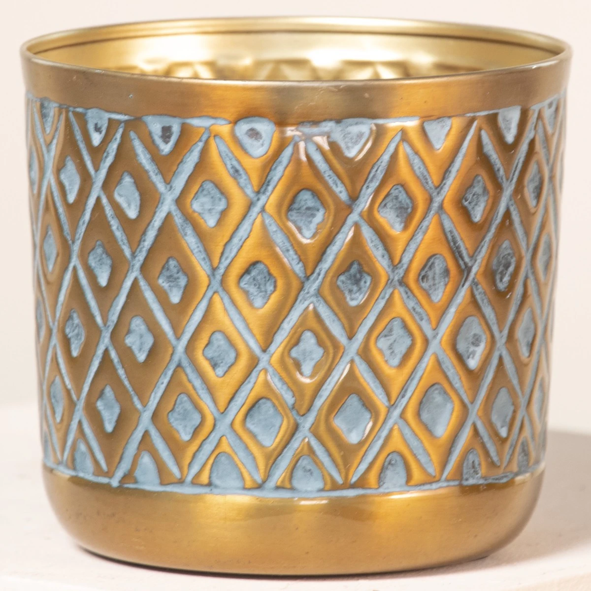 The Reza metal flower pot range draws its inspiration from vibrant Indian culture, drawing influence from the captivating world of Bollywood cinema. This influence is evident in its eye-catching design, featuring an intricate pattern infused with a striking blend of gold and a myriad of colours. Reza adds a burst of energy and an explosive finishing touch to any space it graces.