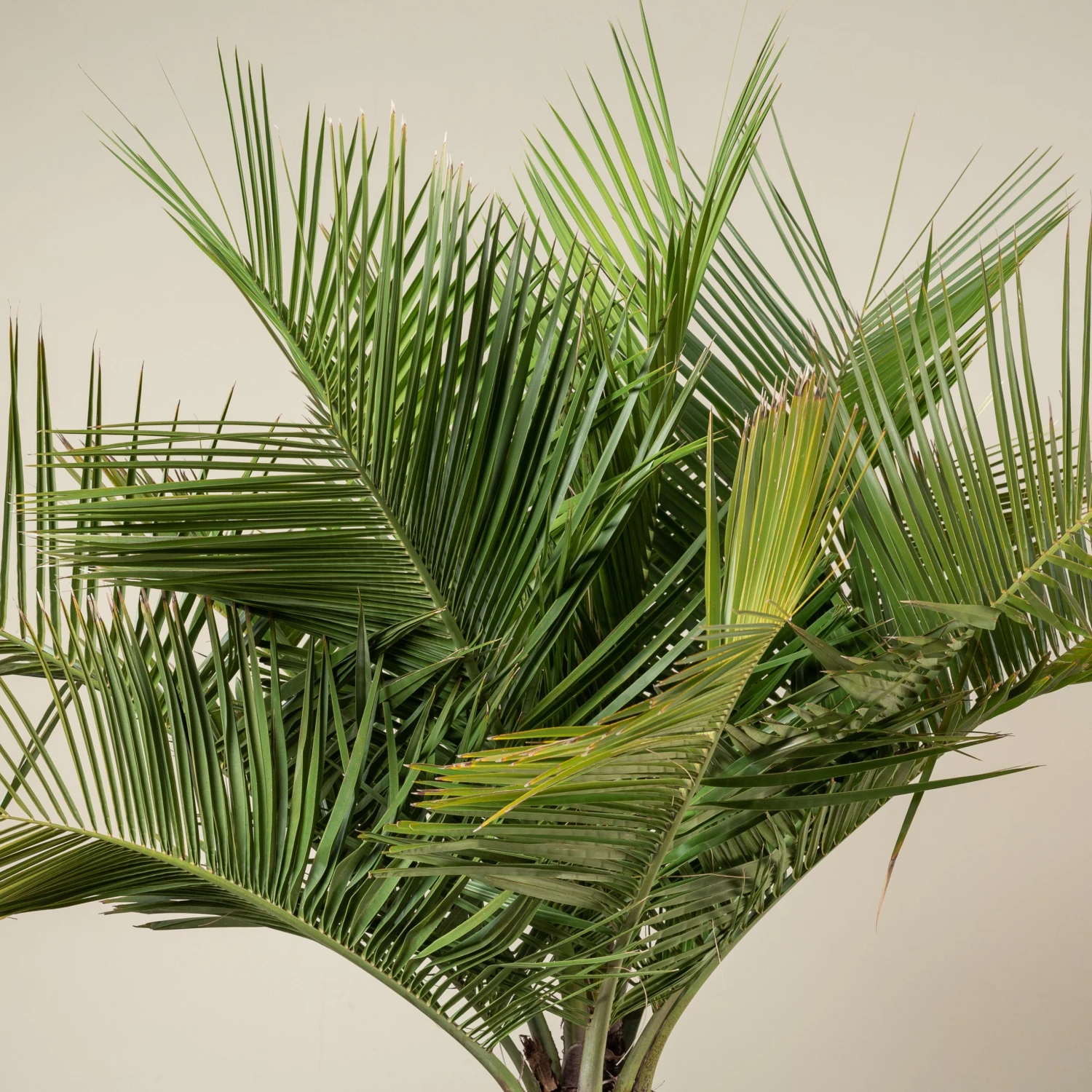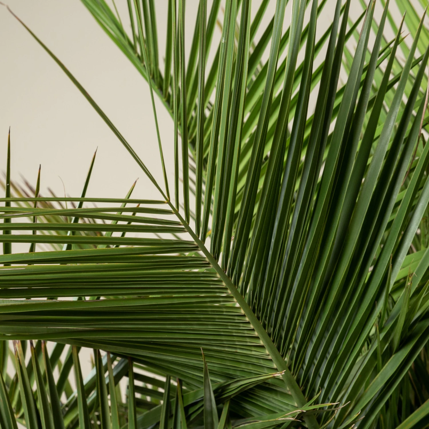 This hardy and striking species has the widest trunk of any palm, contrasting with the sweeping feathery fronds that sit atop it.