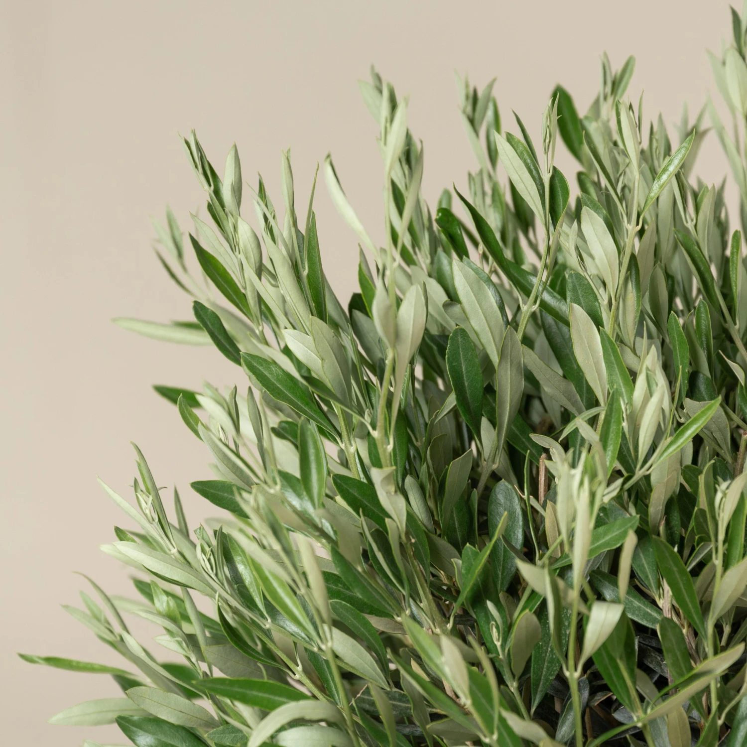 Topiary Olea europaea is a medium sized tree with a thin trunk, iconic silver-grey green leathery leaves clipped into a loose ball, and sweetly scented flowers. These are a perfect choice for those looking for an olive in a more formal garden, or to decorate entrances.