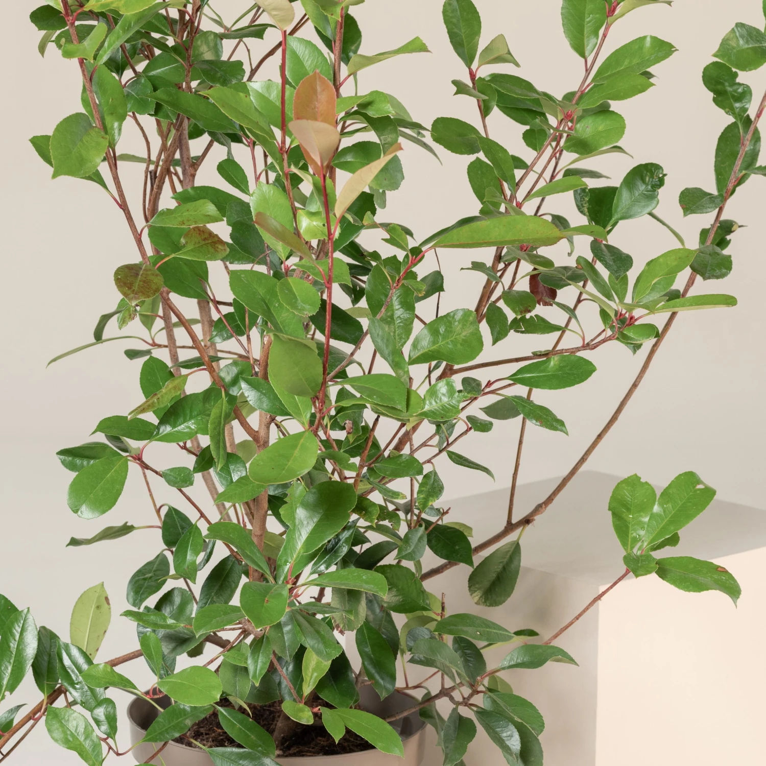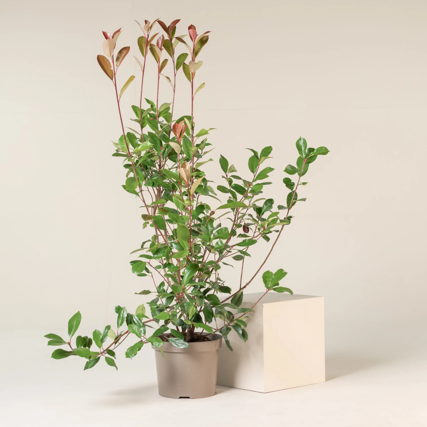 Probably the most popular hedging plant of the last 20 years, Photinia x fraseri is a large hybrid Photinia of P. glabra and P. serrulata. This robust evergreen shrub has delightful red young foliage and heads of long lasting creamy flowers in late spring. Perfectly hardy for most UK gardens, often looking best in sunnier spots.