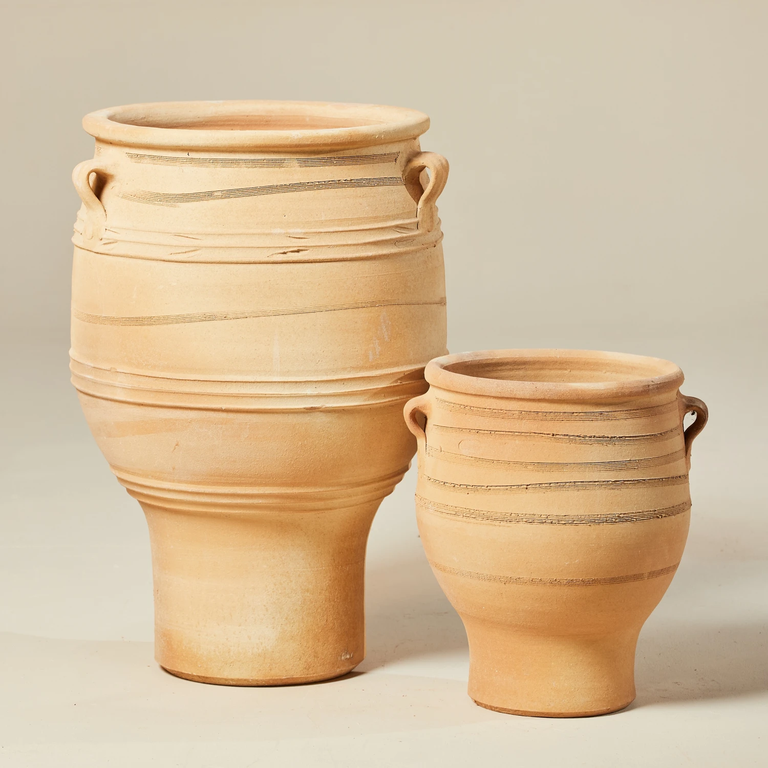These delightful terracotta urns are handmade in Crete and will lend a touch of Greek sophistication to your outdoor space or conservatory. Pithari is a Greek word meaning a “narrow-necked vessel or bottle” and you can certainly see that inspiration reflected in these shapely pots.