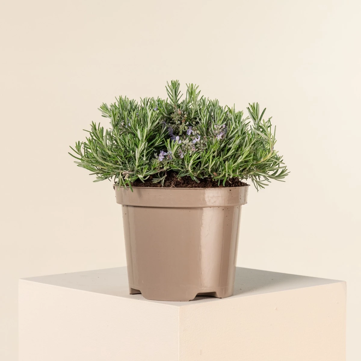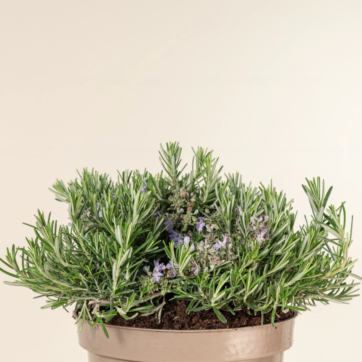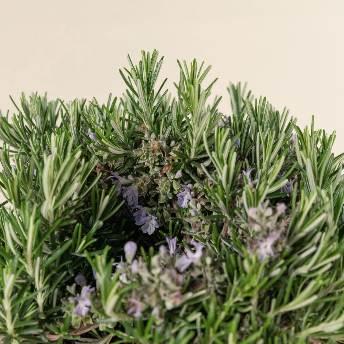 A gorgeous creeping rosemary with trailing aromatic evergreen branches and pale blue flowers. Delightful spilling over a pot or raised bed in a sunny well drained position.